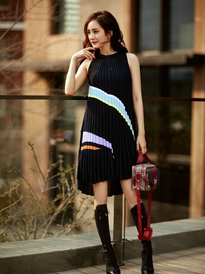 杨幂街头光影漫步 从容自在诠释时尚真谛